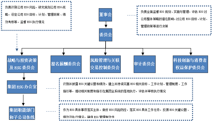 中國太保把環(huán)境、社會及公司治理(Environmental, Social and Governance,簡稱“ESG”)全面融入公司的經(jīng)營管理中,依據(jù)ESG報告指引重點,識別ESG風險,制定應(yīng)對策略,優(yōu)化運營體制。在實施中考慮環(huán)境、社會及公司治理的影響,推動各個職能部門將相關(guān)指標與要求整合融入其日常運營中,推進太保成為“行業(yè)健康穩(wěn)定發(fā)展的引領(lǐng)者”。