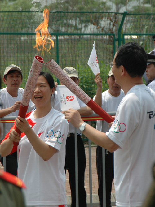 2008年5月23日,北京奧運(yùn)火炬在上海傳遞,上午10點(diǎn)30分,來自太平洋保險(xiǎn)的陳尉華擔(dān)任了上海站83號火炬手,以矯健的步伐奔跑完成了火炬?zhèn)鬟f。