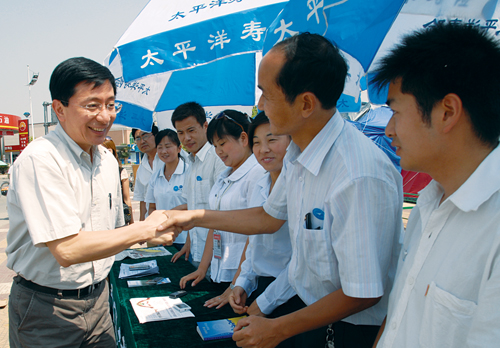 2008年6月3日,太保集團(tuán)董事長(zhǎng)高國(guó)富、太保產(chǎn)險(xiǎn)常務(wù)副總經(jīng)理許建南、太保壽險(xiǎn)經(jīng)營(yíng)委員會(huì)執(zhí)行委員兼銷(xiāo)售總監(jiān)鄭韞瑜等領(lǐng)導(dǎo)赴陜西慰問(wèn)員工,檢查指導(dǎo)抗