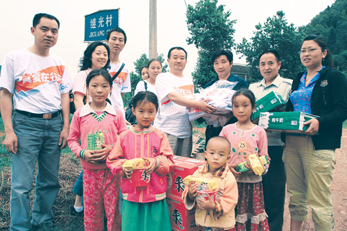 駕車志愿者為援助四川地震災(zāi)區(qū)群眾獻(xiàn)愛心的活動。分公司客戶服務(wù)部陳果等9名查勘員自費(fèi)購買了100箱礦泉水、50箱方便面送到活動現(xiàn)場。當(dāng)天下午6