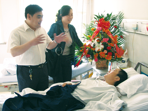 重。6月3日上午,青島分公司總經(jīng)理助理王京濤和營運(yùn)部經(jīng)理蘇屹一行,帶著鮮花和營養(yǎng)品來到青島青紡醫(yī)院,詳細(xì)了解客戶的病情,到病房看望易某,表達(dá)了太