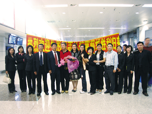 在吉林,吉林分公司總助陳廣華帶隊(duì)來到機(jī)場(chǎng),迎接牛彤抗震救災(zāi)凱旋而歸,讓這位東北