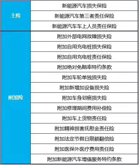答: 新能源車險包含3大主險和13個附加險。(具體險種)