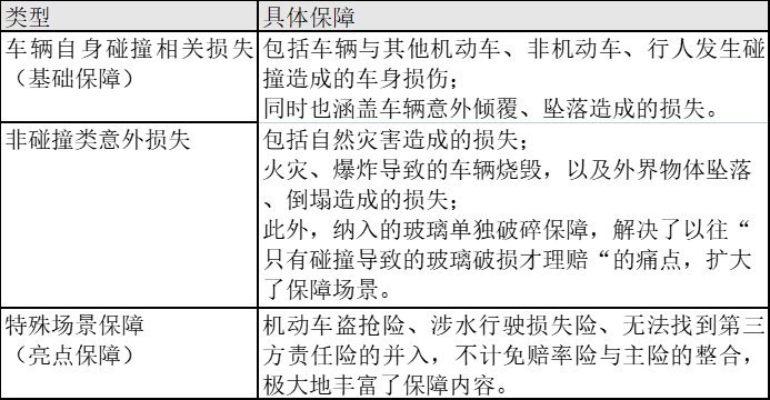 具體來看,現(xiàn)行車損險的核心保障可分為三大類。