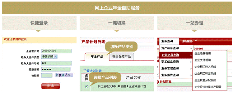長江養(yǎng)老網(wǎng)上平臺(tái)是養(yǎng)老金行業(yè)內(nèi)首家實(shí)現(xiàn)全天候服務(wù)與全業(yè)務(wù)覆蓋的電子商務(wù)平臺(tái)。平臺(tái)全面支持企業(yè)年金、養(yǎng)老保障等養(yǎng)老金業(yè)務(wù)的辦理與查詢,可一站式滿足企業(yè)包括繳費(fèi)、領(lǐng)取、人員管理、資產(chǎn)查詢、報(bào)表查詢等在內(nèi)的所有業(yè)務(wù)管理需求。目前平臺(tái)已服務(wù)企業(yè)數(shù)達(dá)6000多家,個(gè)人達(dá)80萬人,已累計(jì)辦理養(yǎng)老金業(yè)務(wù)60多萬筆,覆蓋了90%以上的企業(yè)年金客戶群,超過88%的網(wǎng)上業(yè)務(wù)辦理率為業(yè)內(nèi)最高。長江養(yǎng)老網(wǎng)上平臺(tái)搭建了“金融服務(wù)民生”的橋梁,以顯著的優(yōu)勢(shì)為廣大客戶帶來一流的服務(wù)體驗(yàn):