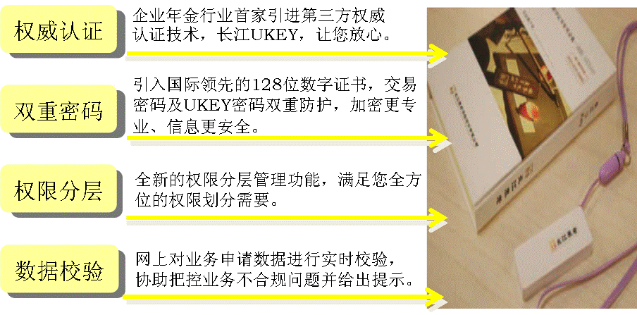 長江養(yǎng)老在信息安全和業(yè)務(wù)風(fēng)險(xiǎn)防控技術(shù)方面位于行業(yè)前列,不僅率先在業(yè)內(nèi)引進(jìn)第三方權(quán)威數(shù)字認(rèn)證技術(shù),還根據(jù)養(yǎng)老金業(yè)務(wù)特點(diǎn),開發(fā)設(shè)置了網(wǎng)上交易密碼、經(jīng)辦人權(quán)限分層管理、業(yè)務(wù)數(shù)據(jù)實(shí)時(shí)校驗(yàn)等風(fēng)險(xiǎn)防控措施。一系列技術(shù)手段結(jié)合成的隱形安全屏障,能有效防止企業(yè)年金信息外泄,極大提高業(yè)務(wù)辦理的安全性,令企業(yè)樂享安心無虞的年金服務(wù)。